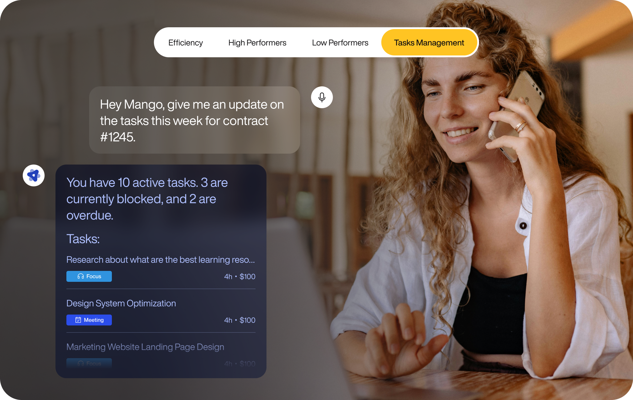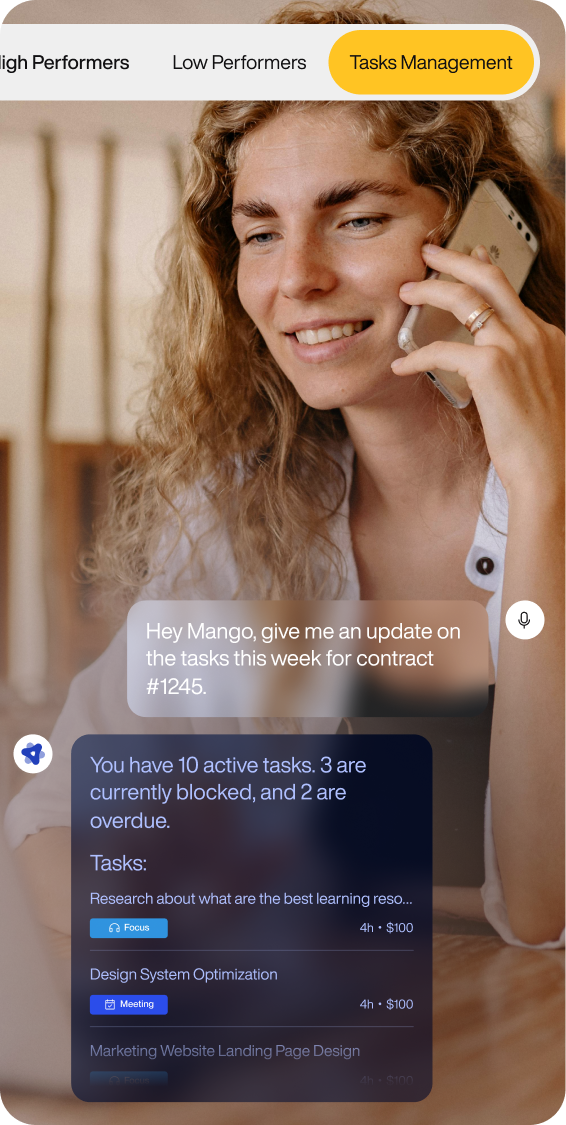 Mango is your smart assistant inside goLance designed to help you manage your contractors more efficiently by turning raw work data into quick, digestible summaries. Instead of spending time reviewing screenshots, timeframes, activity logs, and comments manually, MANGO AI gives you a clear picture of what’s happening right when you need it.